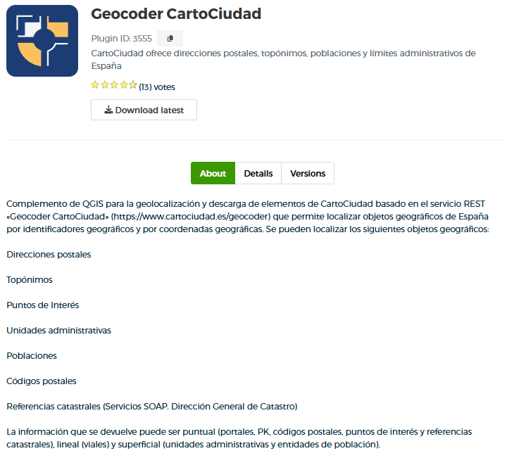 Ya está disponible la nueva versión del plugin Geocoder CartoCiudad, basado en el servicio REST «Geocoder», que permite localizar y descargar objetos geográficos de España a partir de identificadores o coordenadas, así como obtener todos sus atributos asociados. Esta actualización incorpora mejoras clave y nuevas funcionalidades que facilitan el trabajo con datos espaciales oficiales y actualizados en entornos SIG: Novedades destacadas: